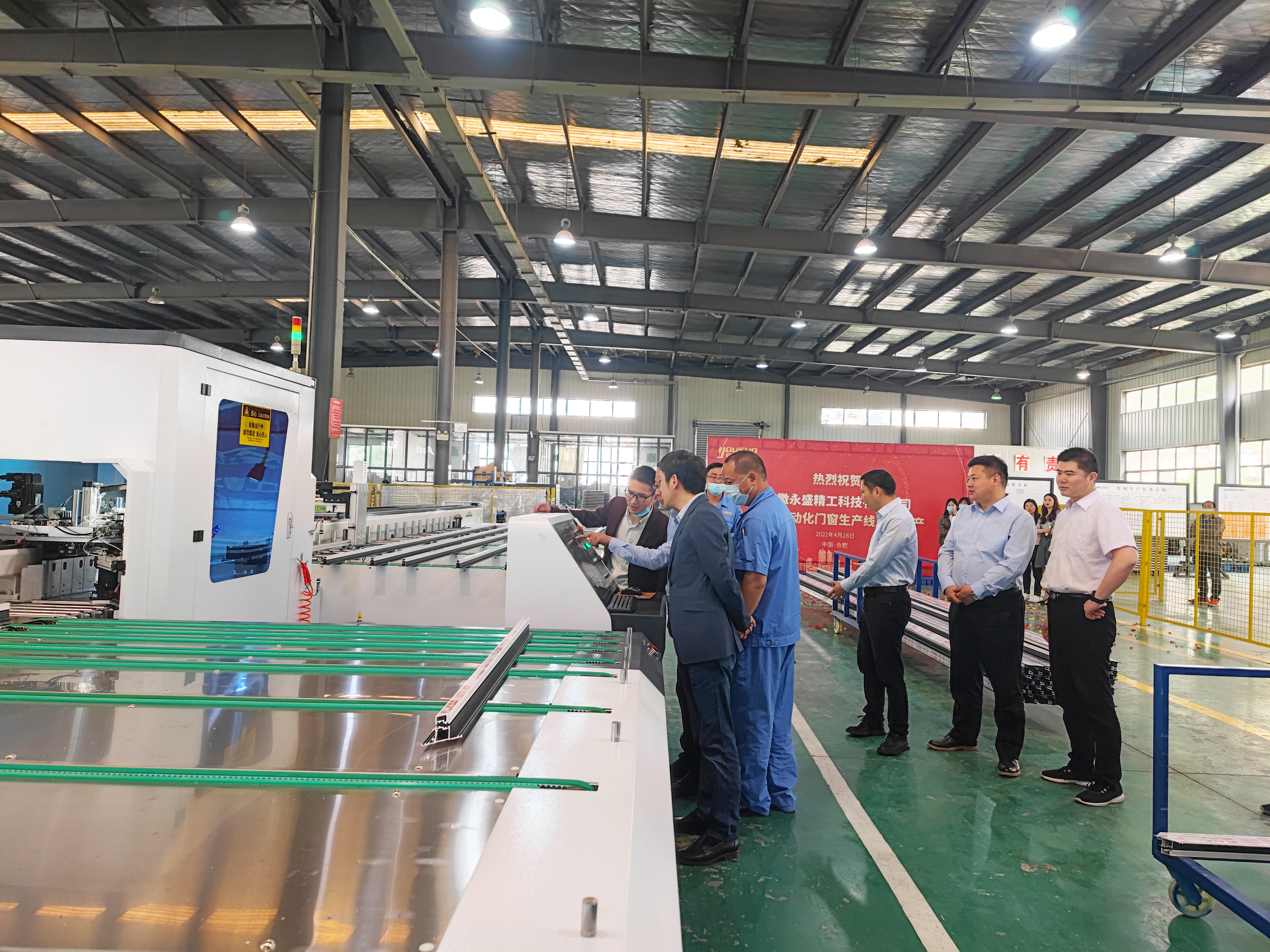 春光明媚,万物可期。4月28日上午9时,安徽永盛精工科技有限公司首条自动化门窗生产线正式投产并举行了隆重的投产仪式。公司董事长陈长江、总经理王新义及各部门负责人及公司部分员工参加投产仪式,共同见证这一重要时刻。
