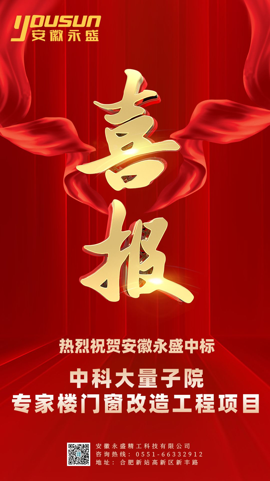 近日,安徽永盛以优质的品牌口碑、领先的技术优势、完善的配套服务从众多投标竞争者中脱颖而出,成功中标中科大量子院专家楼门窗改造工程项目。这是对安徽永盛综合实力的肯定,为公司在高端门窗项目改造上的发展增添了浓墨重彩的一笔。