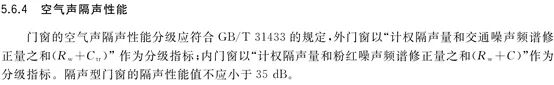 18)空气声隔声性能要求增加了“隔声型门窗最低要求的隔声性能值”(见5.6.4);